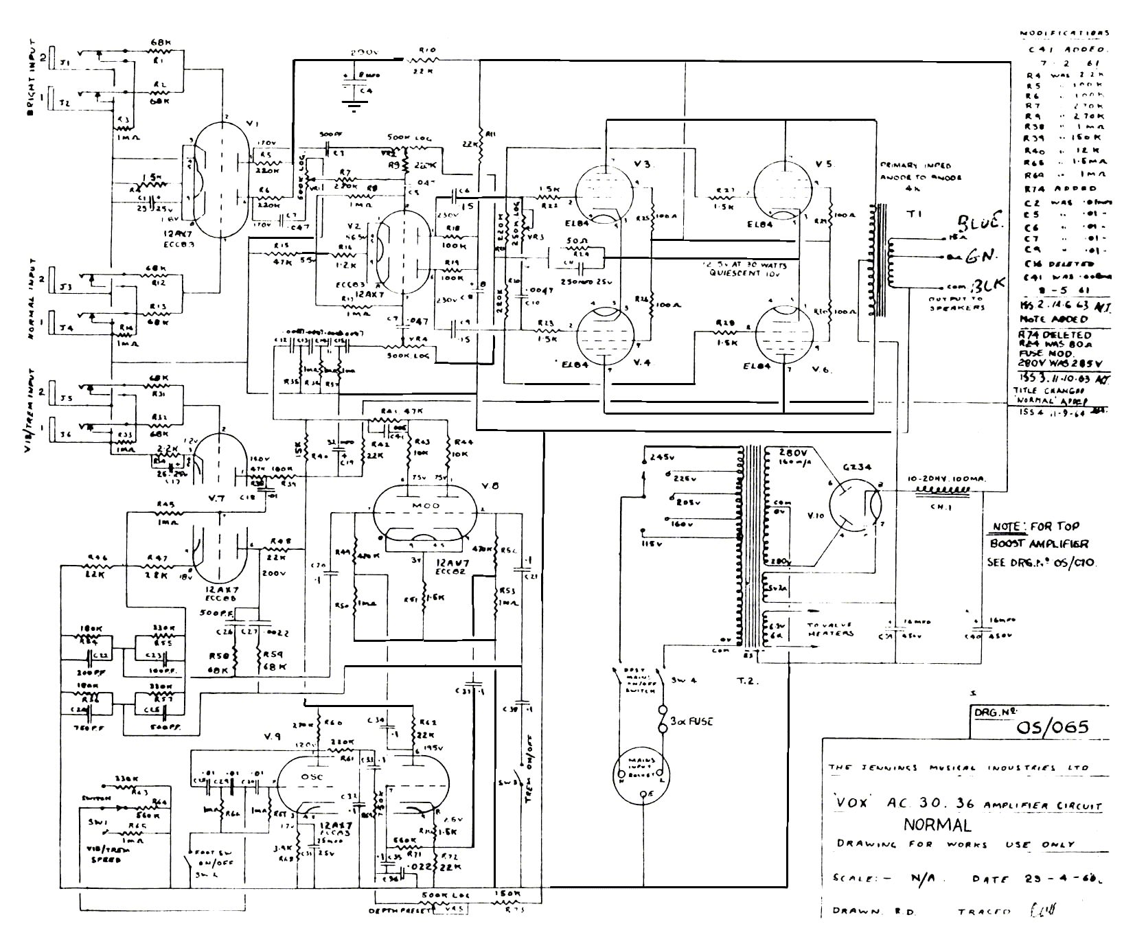 This schematic is the 1960 version of the VOX AC30. Still a benchmark model!!